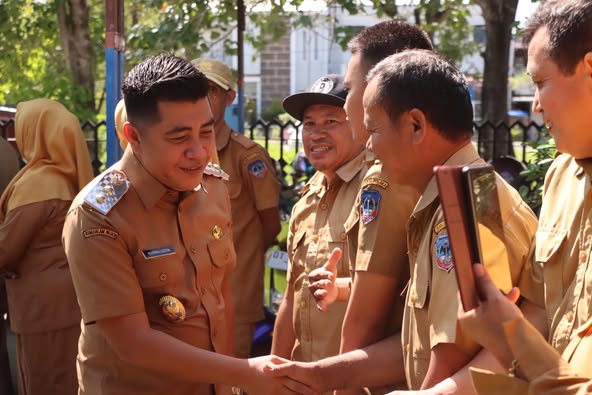 Kolaka – Hari pertama masuk kerja usai libur panjang Idul fitri 1446 H dimanfaatkan Bupati Kolaka H. Amri Djamaluddin, S.STP.,M.Si dan Wakil Bupati Kolaka H. Husmaluddin, untuk menyapa langsung para Aparatur Sipil Negara (ASN) di lingkungan Kantor Pemerintah Kabupaten (Pemkab) Kolaka . Selasa, (08/04)