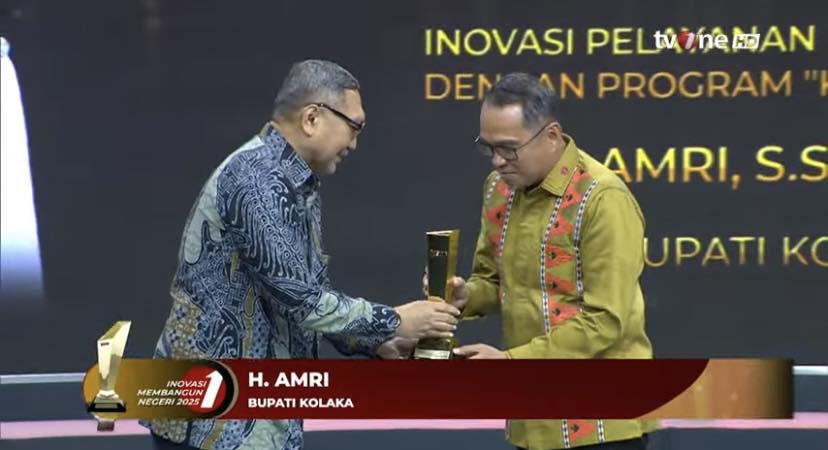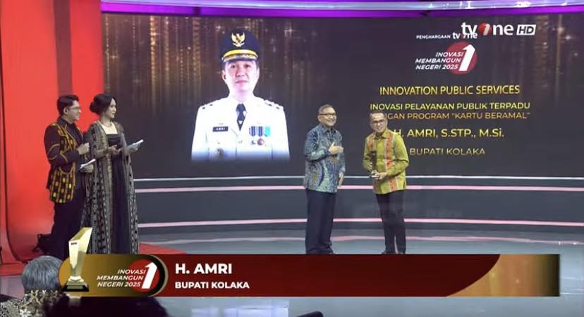 Jakarta – Bupati Kolaka, H. Amry, S.STP., M.Si, menorehkan prestasi membanggakan di tingkat nasional. Kali ini, beliau menerima Penghargaan Inovasi Pelayanan Publik Terpadu dari TVOne atas keberhasilan Pemerintah Kabupaten Kolaka dalam meluncurkan program unggulan “Kartu Beramal”, sebuah inovasi pelayanan publik yang mengintegrasikan bantuan sosial, kesehatan, pendidikan, dan kesejahteraan masyarakat dalam satu sistem terpadu. Sabtu, (08/11)