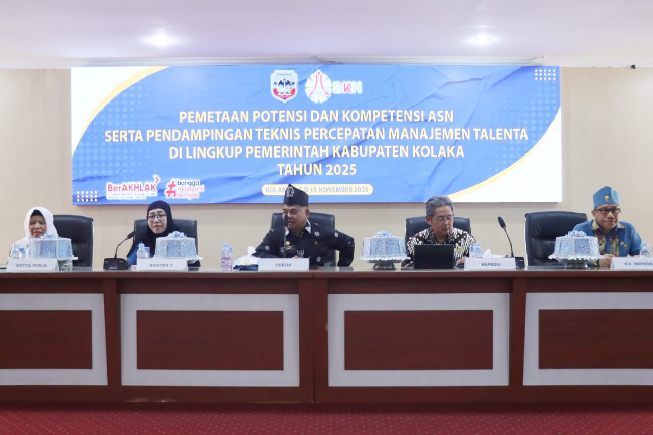 Kolaka – Sekretaris Daerah Kabupaten Kolaka, Akbar, S.Sos, secara resmi membuka kegiatan Pemetaan Potensi dan Kompetensi ASN serta Pendampingan Teknis Percepatan Manajemen Talenta di lingkungan Pemerintah Kabupaten Kolaka Tahun 2025. Kamis, (06/11)