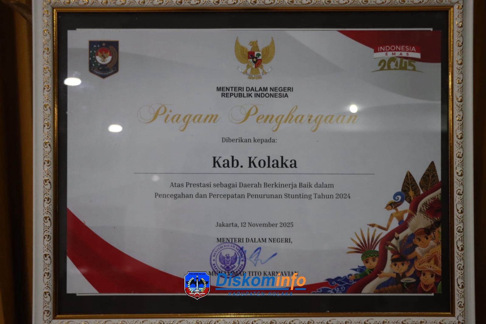 Penghargaan ini merupakan bentuk apresiasi atas komitmen dan kerja keras Pemerintah Kabupaten Kolaka bersama seluruh pemangku kepentingan dalam menekan angka stunting melalui program terintegrasi lintas sektor.