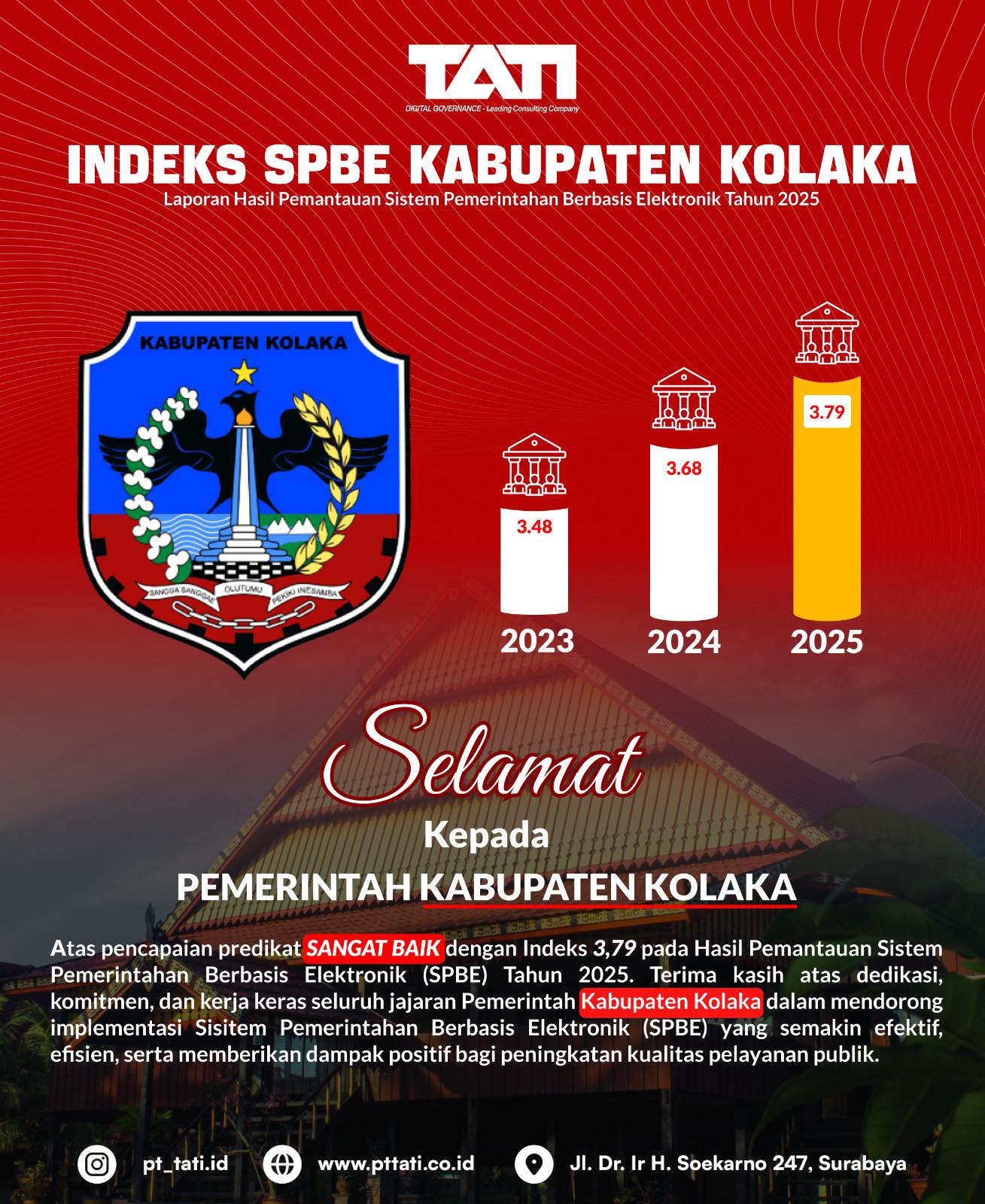 Selamat atas capaian Indeks SPBE Kabupaten Kolaka Tahun 2025 dengan Predikat SANGAT BAIK dengan nilai 3,79