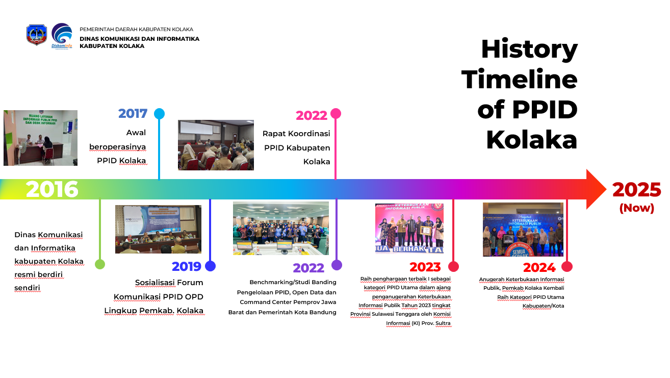 Untuk tujuan inilah setiap Badan Publik wajib menunjuk Pejabat Pengelola Informasi dan Dokumentasi (PPID), yang tugas pokok dan fungsinya adalah bertanggungjawab di bidang penyimpanan, pendokumentasian, penyediaan dan pelayanan informasi. PPID Kabupaten Kolaka dibentuk dan ditetapkan dengan Surat Keputusan Bupati Kolaka nomor Nomor 188.45/176/ Tahun 2017 tentang Penetapan Struktur Organisasi, Penunjukkan Pejabat Pengelola Informasi dan Dokumentasi serta Pejabat Pengelolaa Informasi dan Dokumentasi Pembantu, Dinas Komunikasi dan Informatika Kabupaten Kolaka, mempunyai tugas melaksanakan penyusunan kebijakan teknis dan pelaksanaan kebijakan Pemda Kolaka di bidang komunikasi, informatika, sehingga tugas sebagai PPID secara ex officio pada Kepala Dinas Komunikasi dan Informatika Pemerintah Kabupaten Kolaka..